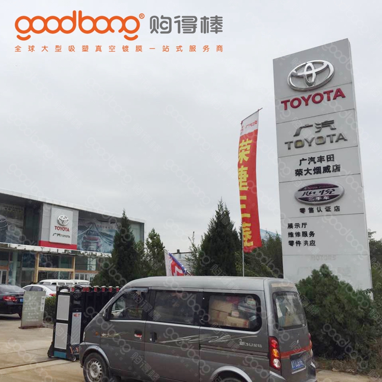 廣汽豐田發(fā)光燈帶也叫做發(fā)光門楣,適用于4S店戶外廣告裝飾,主要是環(huán)繞汽車展館外圍墻面安裝,整體燈帶由若干個(gè)矩形燈罩組成,單個(gè)燈罩材質(zhì)是選用具有水晶一般透明度的亞克力板,將定位好的亞克力板通過烘箱加熱到軟化狀態(tài),吸塑模具再與其周邊形成密閉空間而將模腔內(nèi)空氣瞬間抽走,將板材緊緊貼覆在模具表面,冷卻定型...