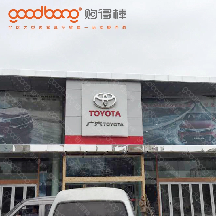 廣汽豐田發(fā)光燈帶也叫做發(fā)光門楣,適用于4S店戶外廣告裝飾,主要是環(huán)繞汽車展館外圍墻面安裝,整體燈帶由若干個(gè)矩形燈罩組成,單個(gè)燈罩材質(zhì)是選用具有水晶一般透明度的亞克力板,將定位好的亞克力板通過烘箱加熱到軟化狀態(tài),吸塑模具再與其周邊形成密閉空間而將模腔內(nèi)空氣瞬間抽走,將板材緊緊貼覆在模具表面,冷卻定型而取得制品。