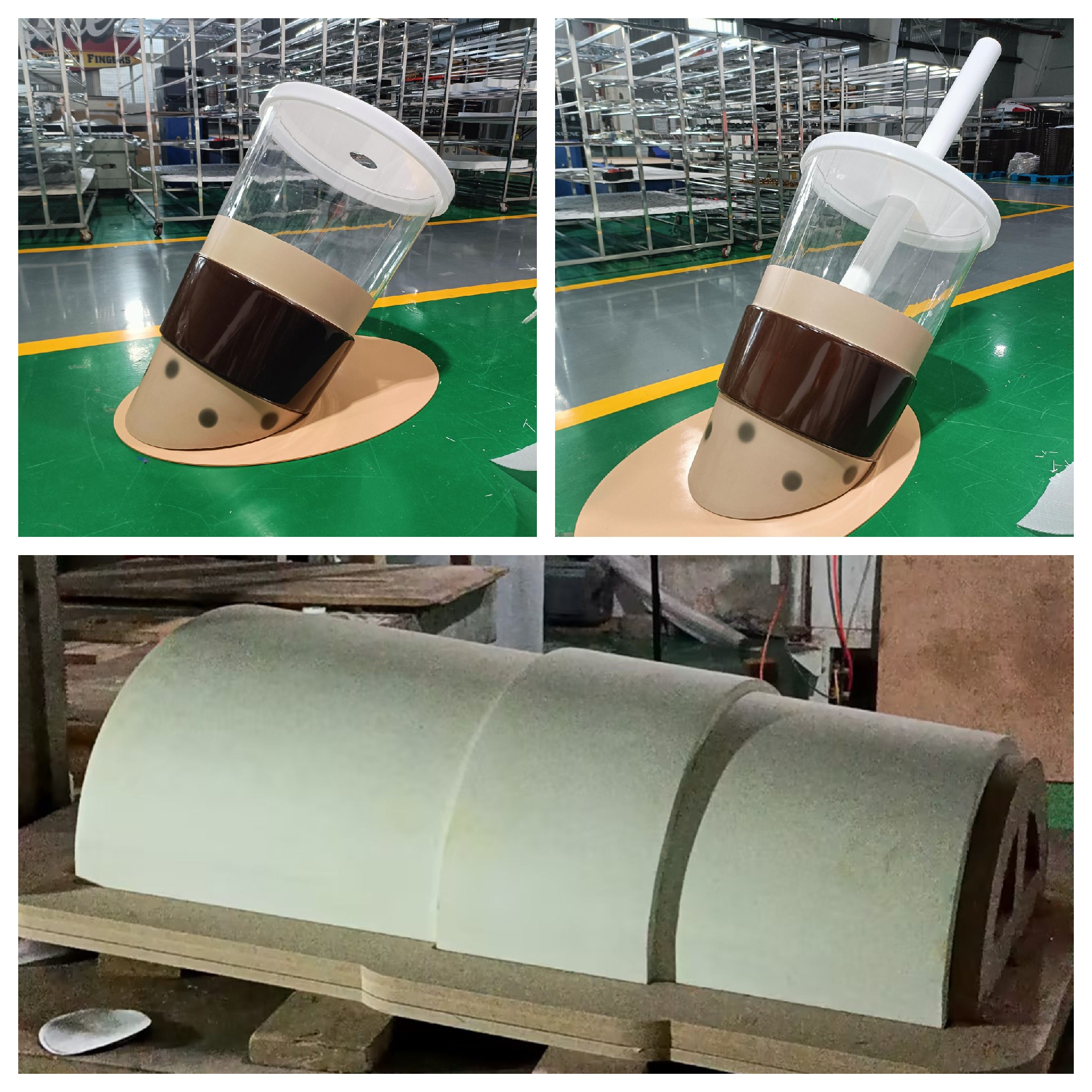 組裝與裝飾:對于心形吸塑造型,還需要進行噴漆、貼膜及安裝光源等。對于珍珠奶茶杯子,則需要進行杯蓋、吸管等配件的組裝等。